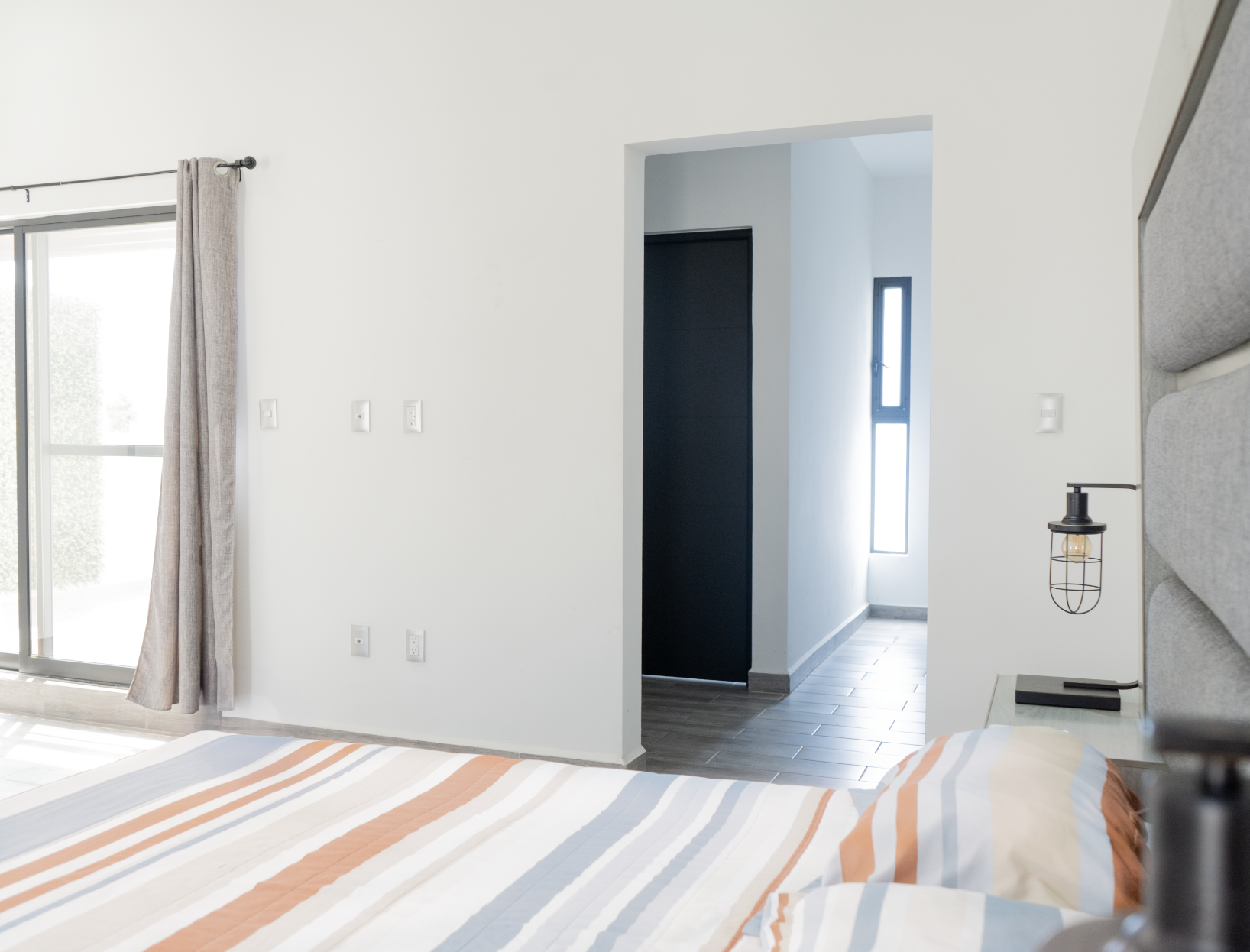 Master Bedroom: Includes a walk-in closet, ensuite bathroom, and private access to the rooftop terrace.